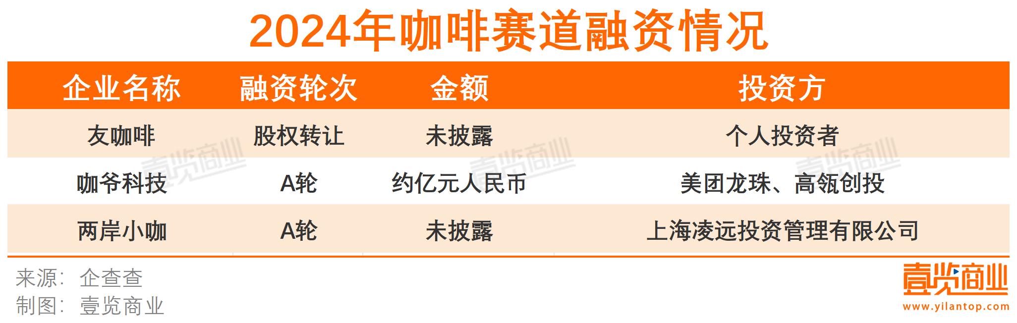 從融資情況看,11月份咖啡賽道獲得3起融資,僅有咖爺科技披露融資金額。值得一提的是,這是咖爺科技在一年內(nèi)斬獲的第二輪融資,2023年12月,咖爺科技獲得Pre-A輪融資,其引入的資方陣容強(qiáng)大,涵蓋高瓴創(chuàng)投、美團(tuán)龍珠、度量衡等眾多知名投資機(jī)構(gòu)。