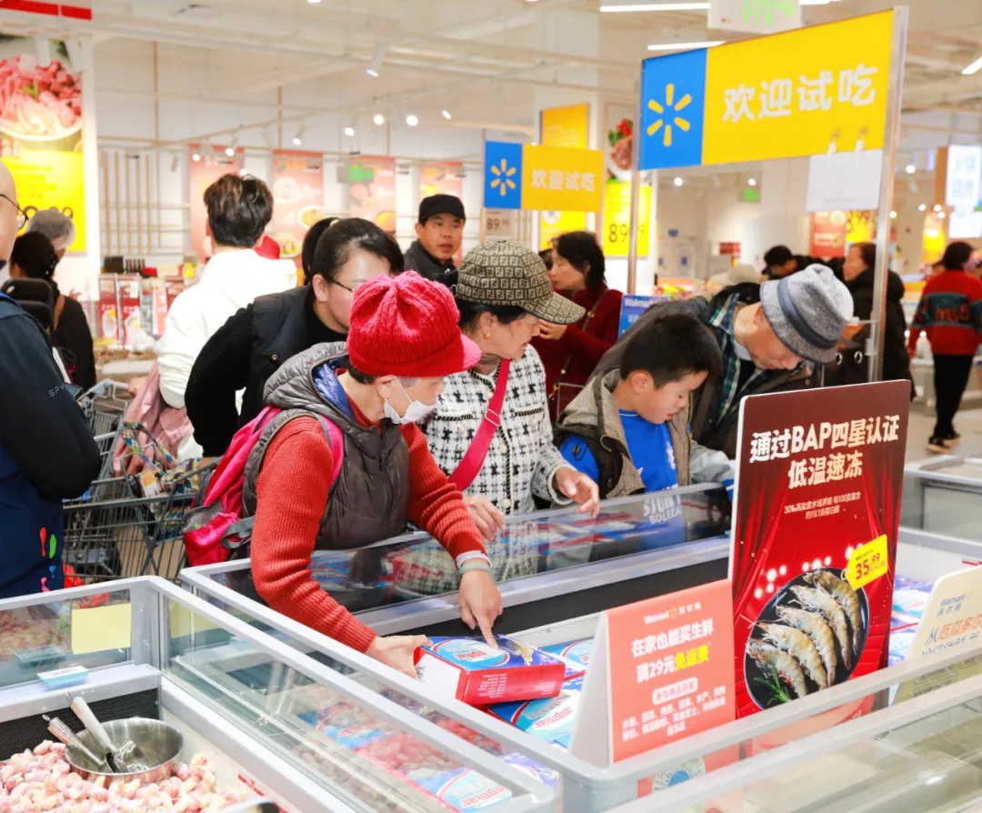 「零售商業(yè)財經(jīng)」了解到,沃爾瑪新一代門店根據(jù)顧客日常消費場景設計了16個區(qū)塊,包括早餐、火鍋燒烤、戶外出行、寵物、生鮮、全球購等。同時,根據(jù)商品使用場景的關(guān)聯(lián)性進行交叉陳列,還新增了果切區(qū)、西式餐吧、快食購(Grab & Go)、鹵水熟食等區(qū)域,以回應顧客“即時餐食”的線下需求。