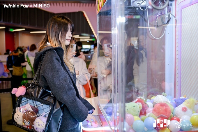 玩家憑快閃消費小票可以在「Twinkle抓住快樂」主題互動區(qū),體驗親手抓取心儀毛絨公仔的過程,更有定制毛絨墻可供玩家與心儀男主合影,F(xiàn)場還推出上海限定彩蛋——玩偶巡游,為玩家?guī)砼c玩偶零距離互動的獨特體驗。