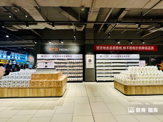 此外,南沙萬達(dá)店引入了DL酸奶水果燕麥脆、DL復(fù)合果汁、自由愛白酒、DL精釀啤酒、DL鱈魚干、DL洗衣液等約40支胖東來的爆款自有商品,其中也包括了部分胖東來針對(duì)代購和黃牛的限購商品,限購政策和商品售價(jià)與胖東來門店保持一致。