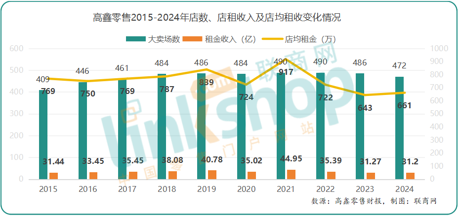 此外,在大賣場(chǎng)業(yè)態(tài)模式中,高鑫零售一直以“店內(nèi)營(yíng)客、店外贏客”著稱,其商店街相對(duì)其他大賣場(chǎng),一直有比較高的運(yùn)營(yíng)水準(zhǔn),滿鋪率及店鋪結(jié)構(gòu)也非常優(yōu)秀。近些年,隨著店內(nèi)業(yè)績(jī)的下滑,其店外租金收入也受到一定影響。
