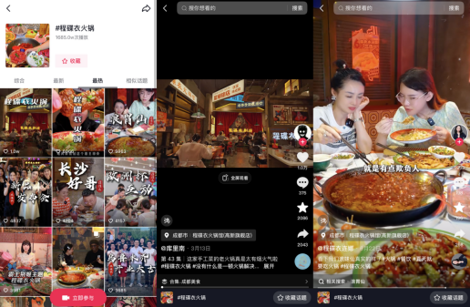 平臺數(shù)據(jù)顯示,重慶的程碟衣火鍋就在入選抖音心動餐廳榜后,線上流量明顯增長,#程碟衣火鍋 抖音相關(guān)話題播放量增長超140%。