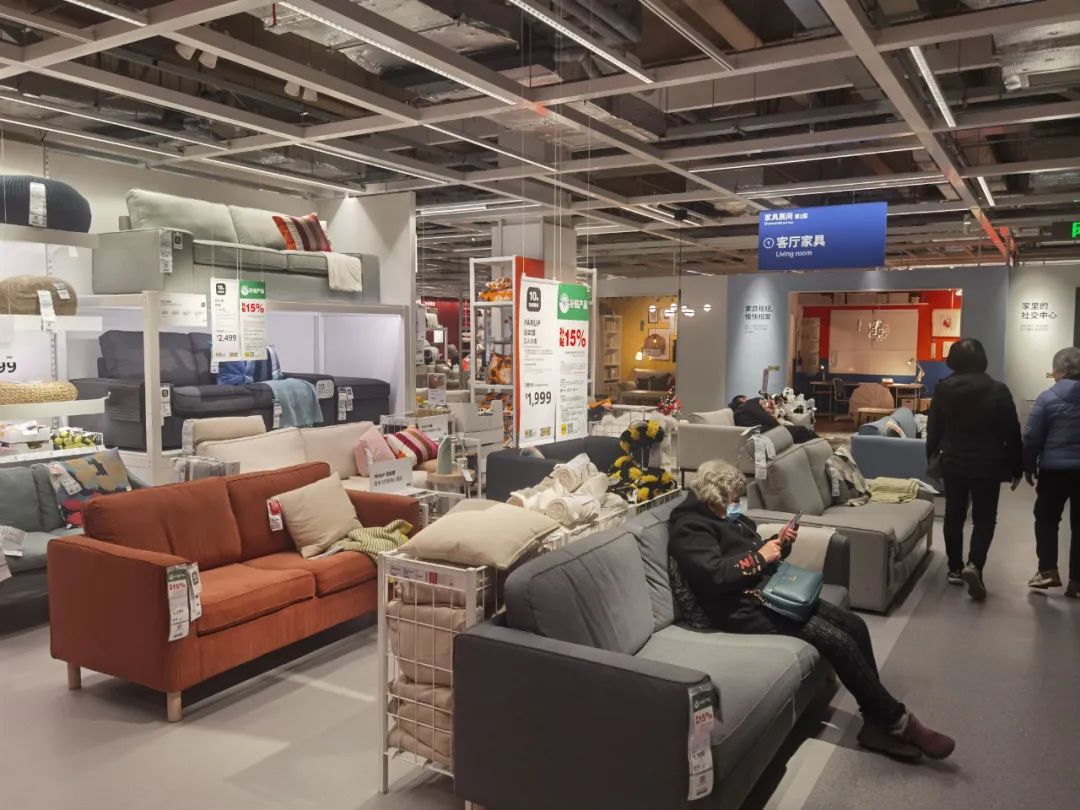 在十年前,在宜家的沙發(fā)上午休,甚至在樣板床上蹭一個(gè)午覺(jué),還是不少宜家商場(chǎng)聊以自詡的一道風(fēng)景線。如今,門可羅雀也不至于,我們編輯在店里看到,在沙發(fā)上休息,在樣板間里辦公拍照刷手機(jī)的人還是不少,但人流確實(shí)沒(méi)有以前多了。