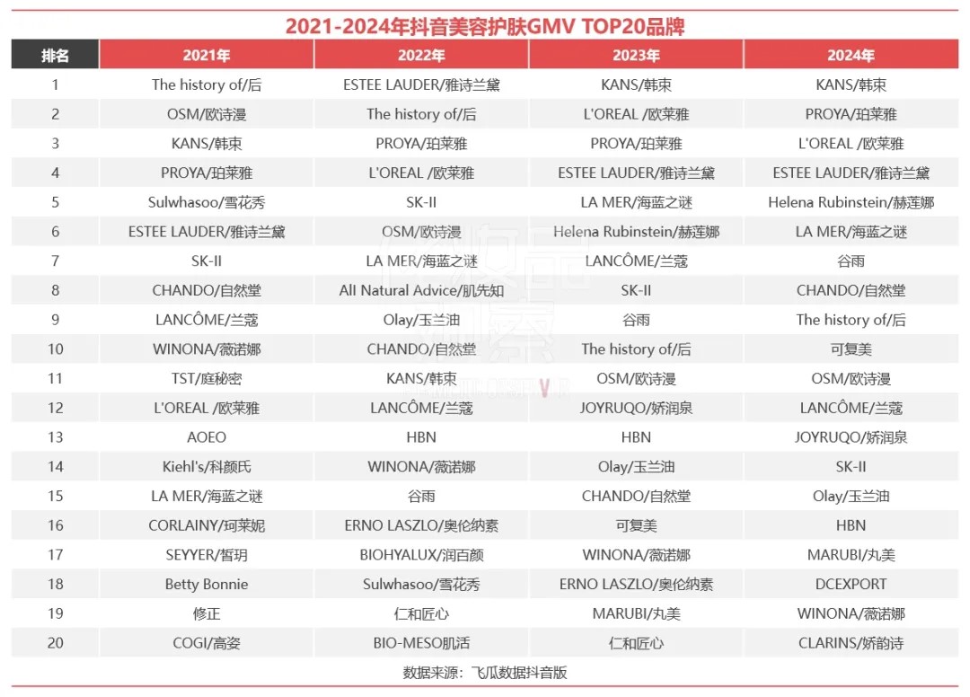 2024抖音美妝TOP20出爐,國(guó)貨11席,最高超65億