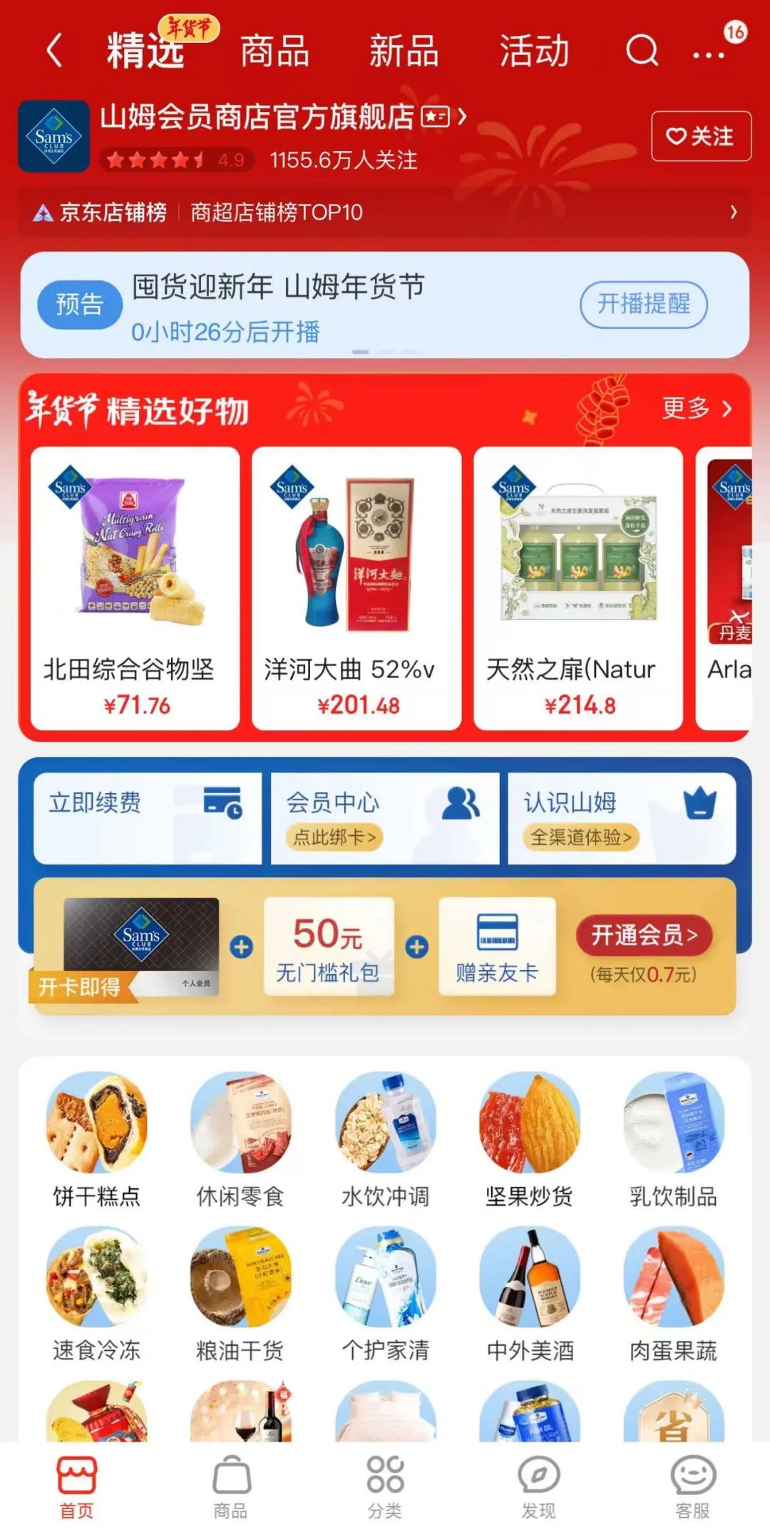 入駐京東的山姆會(huì)員商店官方旗艦店界面 圖源:京東APP