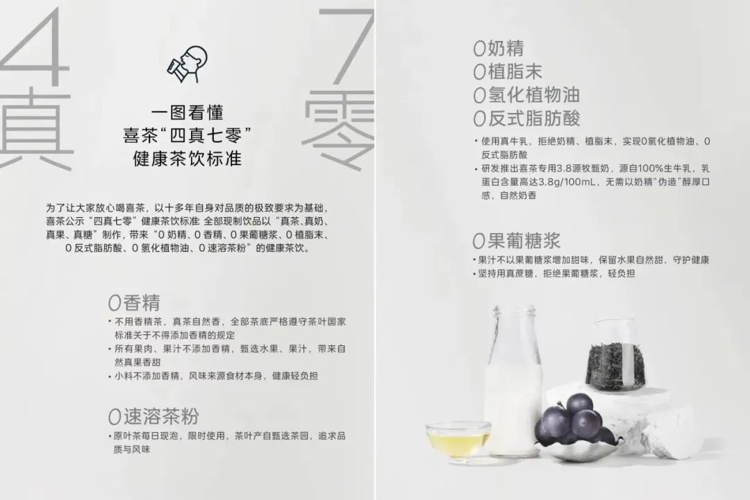 2022年,喜茶發(fā)布首個行業(yè)倡議書,呼吁行業(yè)全面升級用奶原料品質(zhì),普及真奶應(yīng)用、拒絕奶精,提升行業(yè)品質(zhì)。2023年7月,霸王茶姬宣布在門店使用新基底產(chǎn)品“冰勃朗非氫化基底乳”之后,行業(yè)內(nèi)其他品牌紛紛跟進(jìn)。