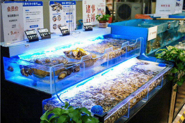 此外,門店水產(chǎn)海鮮也做了加強(qiáng),全面實現(xiàn)了自營。品種上,既有活蹦亂跳的波龍、面包蟹、黑虎蝦、石斑魚等高品質(zhì)海鮮,也有常規(guī)基圍蝦、鱸魚等,價格也相當(dāng)親民。水產(chǎn)海鮮的增加,補齊了華潤萬家品類短板,一條魚、一網(wǎng)蝦,增加的是門店的煙火氣,更是用戶生活的幸福感。