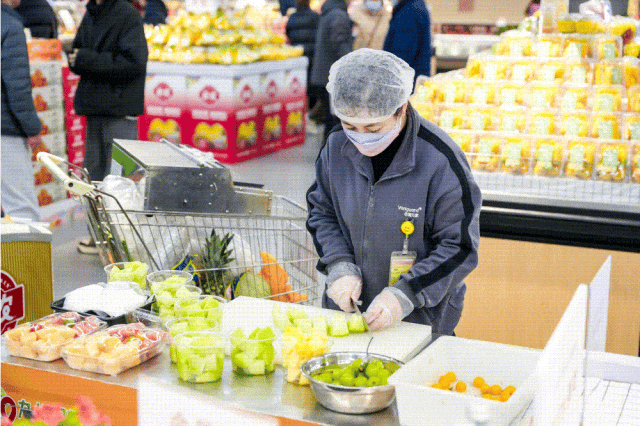 此外,門店貼心增設(shè)了三十多項服務(wù)舉措,如洗手臺、打包臺、放大鏡、冰柜手套、免費取冰、免費一次性用品取用、免費手機(jī)充電等便民服務(wù)。還有隨處可見的暖心“小貼士”,如牛肉部位如何識別、三文魚的營養(yǎng)價值表、如何挑選好吃的榴蓮等,這些暖心科普,讓鄰里街坊購物消費時,吃得健康、逛得有趣、買得省心。