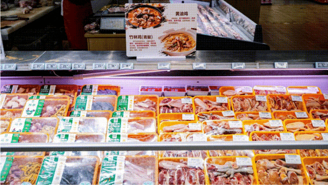 同時,代表品質(zhì)生活、精致消費的品類也大幅增加。如肉品區(qū),精品牛肉、原切羊肉、凈菜切配組合、腌制肉類、鮮禽部位裝盒等,分類清晰,包裝精美;更有澳洲和;疱伔逝>怼⒈r走地老母雞、鮮切牛吊龍火鍋片等心智爆款,配合各種貼心服務(wù),極大程度地增加了顧客的購買欲。為了保持鮮度,肉品會每日出清,讓利消費者的同時更保障了周轉(zhuǎn)品質(zhì)。
