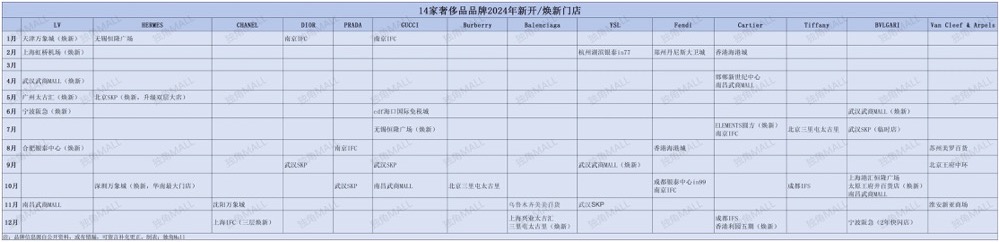 LV:2024年10月關(guān)閉位于沈陽卓展購物中心的門店;原計劃2024年上半年開業(yè)的北京三里屯太古里旗艦店,延遲至2025年開業(yè);去年3月撤除位于海口萬象城的圍擋。