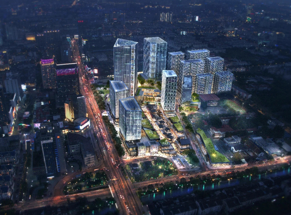 綜合體由一座約10萬平方米的購物商場、五座甲級(jí)辦公樓和浙江省首家文華東方酒店組成。