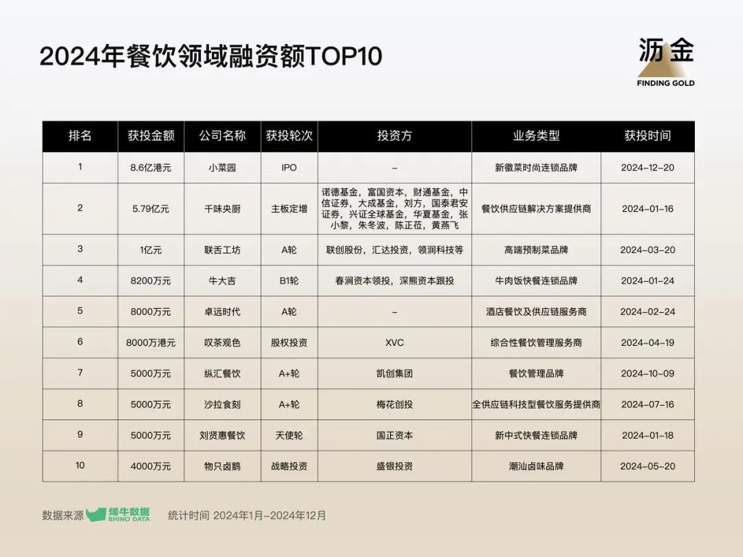 餐飲領(lǐng)域融資額TOP10