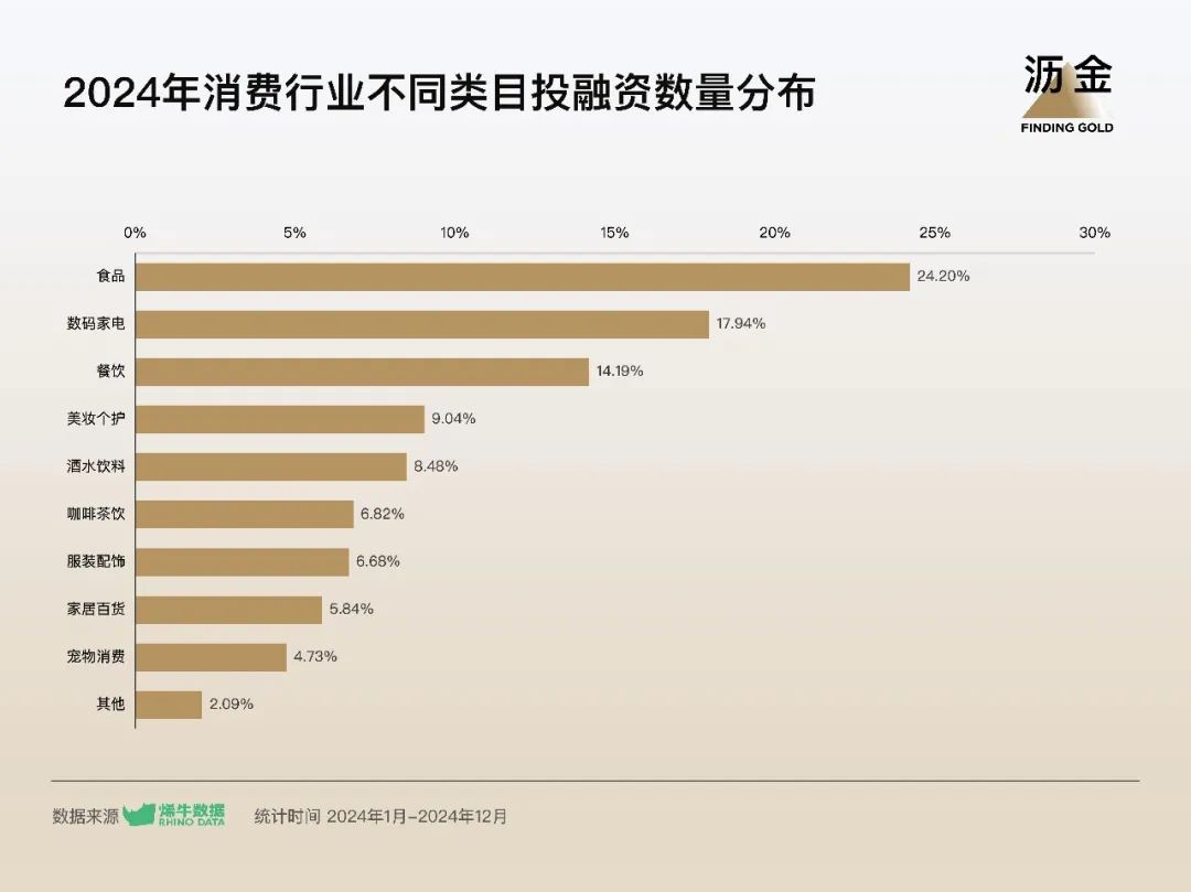 雖然相較于數(shù)年前,2024年消費投融資市場整體活躍度較低,但市場依然存在結(jié)構(gòu)性機會,特別是在一些細分領(lǐng)域,如數(shù)碼家電、食品等賽道。