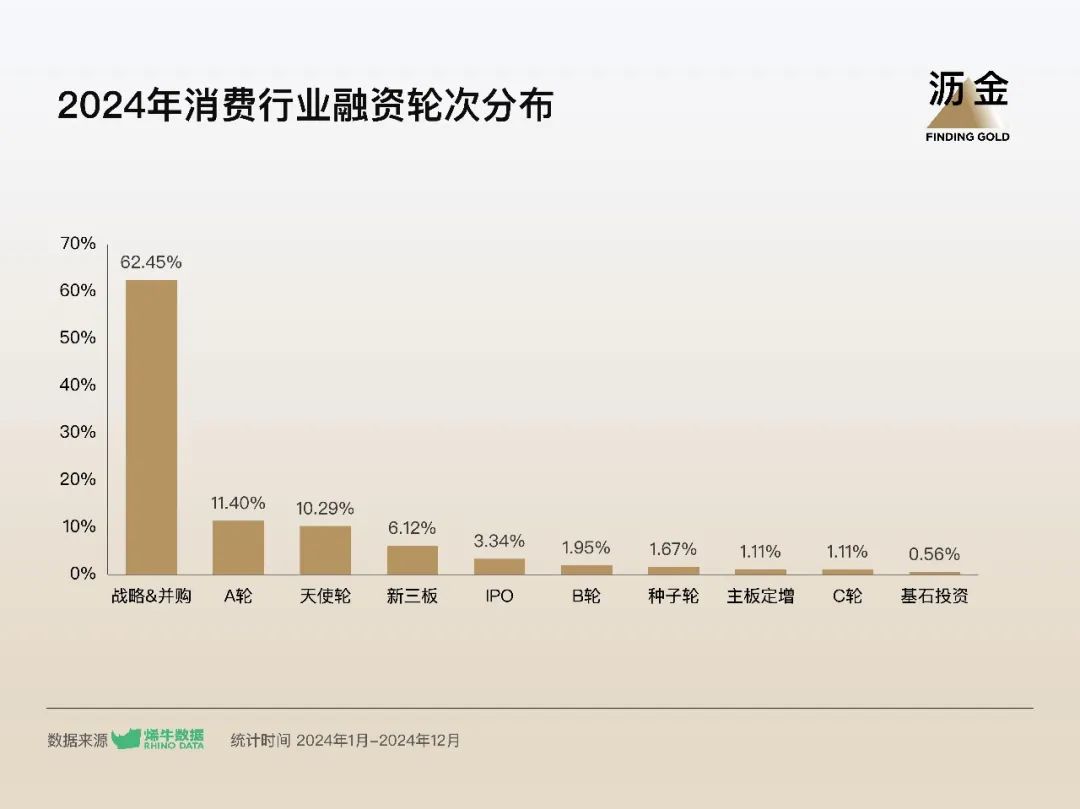 2024年消費融資主要集中在戰(zhàn)略投資、并購、A輪及天使輪。