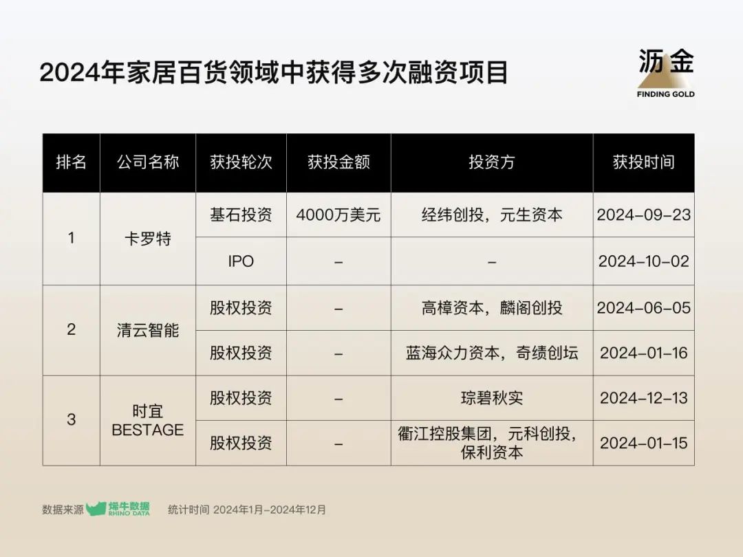 家居百貨領(lǐng)域中獲得多次融資項目