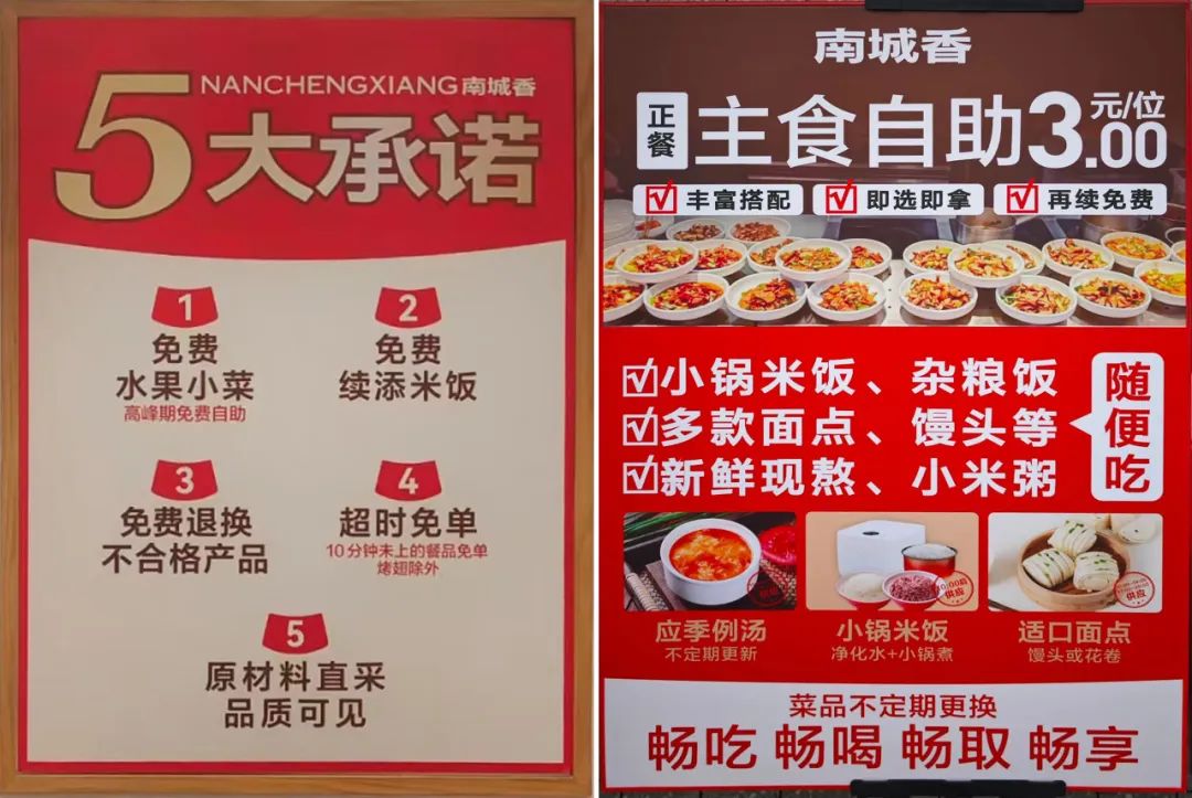 除了價(jià)格實(shí)惠,南城香還曾推出“顧客不滿意就退單”,餛飩皮破了免單、羊肉串烤糊免單;還有提供免費(fèi)的水果、餐具、紙巾這些非常人性化且親民的用餐服務(wù)。