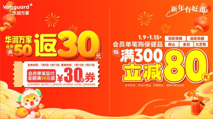 具體來(lái)看,1月9日至1月15日期間,會(huì)員單筆實(shí)付50元送30元現(xiàn)金券,1月16日-1月21日期間滿(mǎn)98元即可抵用。同時(shí),活動(dòng)期間華潤(rùn)萬(wàn)家還精選多款年貨好物給消費(fèi)者帶來(lái)驚喜好價(jià)。