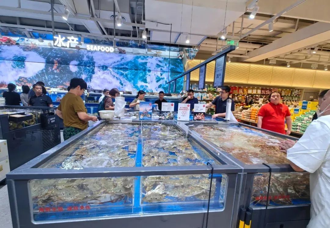 (4)水產(chǎn)相對菜場更有品質(zhì)印象。波龍、澳龍、面包蟹、三文魚等大眾化,相對菜場更有品質(zhì)優(yōu)勢。