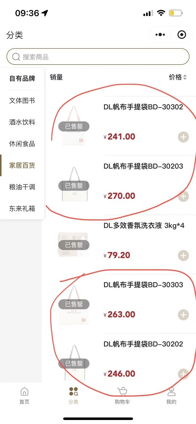 據(jù)許昌胖東來視頻號發(fā)布信息,以胖東來商品開發(fā)理念,上線幾款帆布手提袋,其希望通過帆布包,將胖東來文化傳播出去。從1月5日開售沒幾天,售價從180元到270元的手拎袋已經(jīng)全部顯示“售罄”。