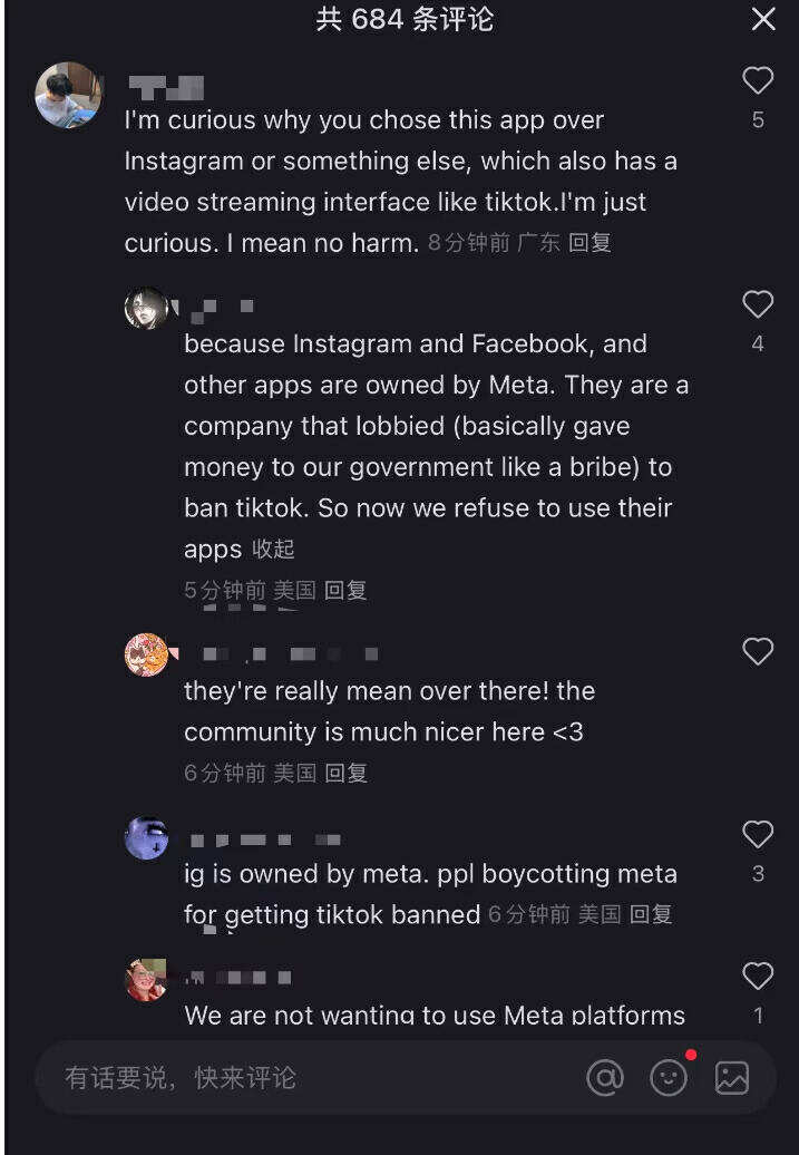 道理相同,因TikTok“不賣就禁”而涌入的美國用戶,可以在此停留多久,還不好說。他們中的大多數(shù),進入小紅書是因為對Meta與美國政府的逆反心理,并不是對平臺發(fā)自內(nèi)心的熱愛。