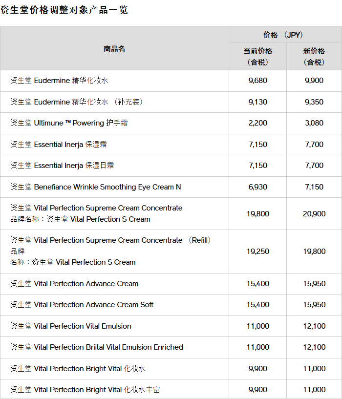 資生堂官宣漲價,漲價幅度在2%-10%不等