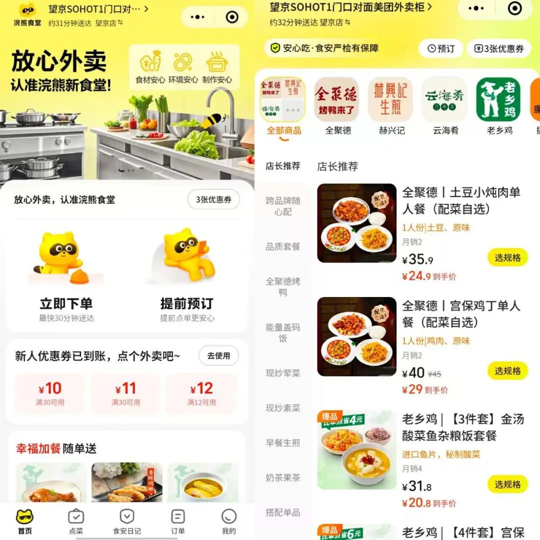 浣熊食堂在線上有兩個入口,一個位于美團外賣App的功能頻道內(nèi),與拼好飯等熱門業(yè)務(wù)并列;另一個則是通過微信搜索浣熊食堂小程序,即可使用體驗。