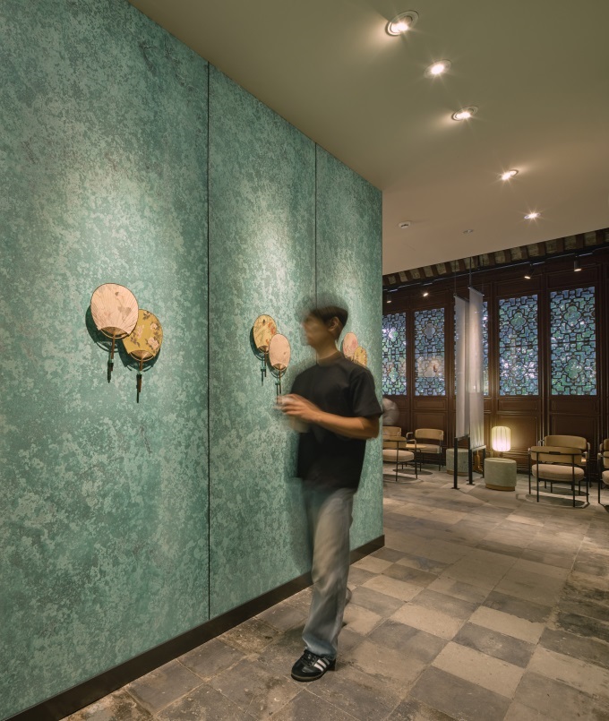 此外,門店特別選用了中式宮燈造型的落地?zé)簟⒎旅髑寮揖咴O(shè)計的卡座、寓意接天蓮葉無窮碧的綠色六邊形花磚地面……每一處細(xì)節(jié)都透露出對傳統(tǒng)文化的致敬與傳承。