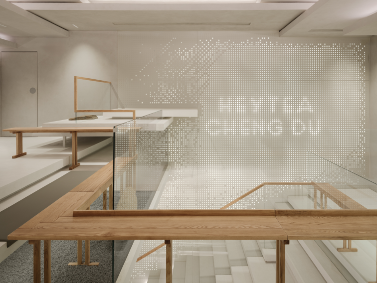 在設(shè)計(jì)上,門(mén)店打破常規(guī)上下層建筑邊界,通過(guò)線型分割重新解構(gòu)原有建筑空間,以層層疊疊的臺(tái)階建構(gòu)起不同高度的社交平臺(tái),形成四處皆可落座的茶事空間,在門(mén)店內(nèi)筑起一座立體疊院。沿階而上,步步遞進(jìn),飲茶與起坐平臺(tái)高低錯(cuò)落,移步換景間每一處角落都可以成為互動(dòng)、交流的場(chǎng)所,營(yíng)造出一個(gè)模擬院壩的鄰里環(huán)境。