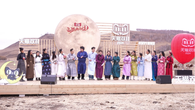 而到了雙十一期間,天貓在科右前旗草原舉辦了一場種草大會直播,邀請節(jié)目嘉賓參與直播,與觀眾實時互動,分享他們在節(jié)目中的生活體驗和使用天貓商品的心得,并現(xiàn)場展示和推薦相關商品。