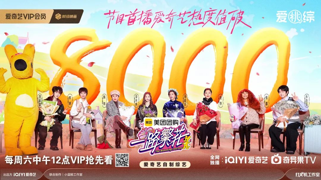 例如,近期的熱播綜藝《一路繁花》,在第一期上線不到一周時間,全網(wǎng)熱搜熱榜已達兩千多個,愛奇藝站內(nèi)熱度突破8000,并拿下多個第三方數(shù)據(jù)榜單榜首。
