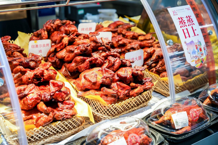 煥新門店從家庭場景出發(fā)的同時(shí),強(qiáng)化了針對(duì)年輕消費(fèi)群體的商品,比如在賣場入口處增加的現(xiàn)場制作的壽司、烘焙以及韓國炸雞等品類,同時(shí)設(shè)置了網(wǎng)紅酒飲、冷藏乳飲、休閑食品等滿足年輕客群的需求,收銀線內(nèi)側(cè)增加自營的鮮花品類。使整個(gè)賣場既有能滿足年輕人追求的“新”,也有定位家庭客群一家老小都喜歡的“鮮”品味。
