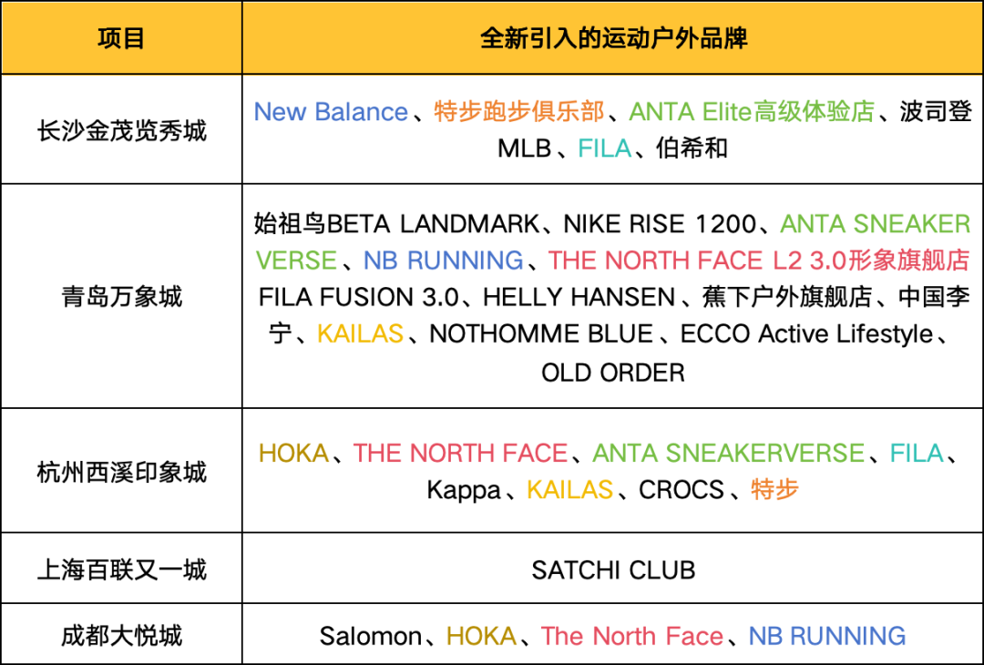 綜合五大項目的品牌引入情況來看,這兩年大熱的運動戶外品類成為了調(diào)整共識。