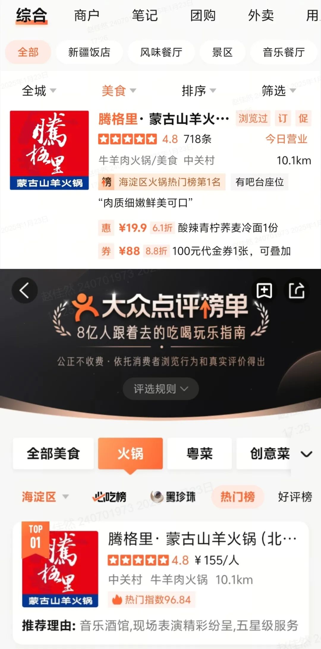 西貝旗下品牌“騰格里”悄悄登上“海淀區(qū)火鍋熱門榜第一名”。