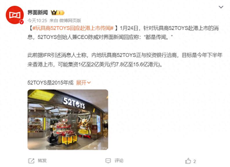 內(nèi)地玩具商52TOYS計劃今年在港交所上市?