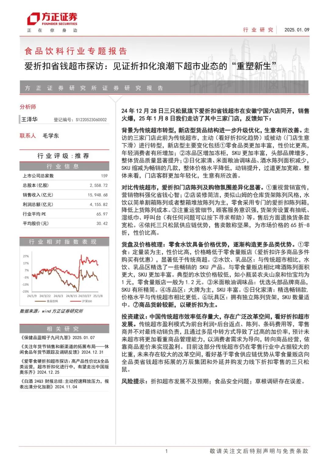 *本文來(lái)自方正證券研究所于2025年1月11日發(fā)布的報(bào)告《愛(ài)折扣省錢超市探訪:見(jiàn)證折扣化浪潮下超市業(yè)態(tài)的“重塑新生”》。