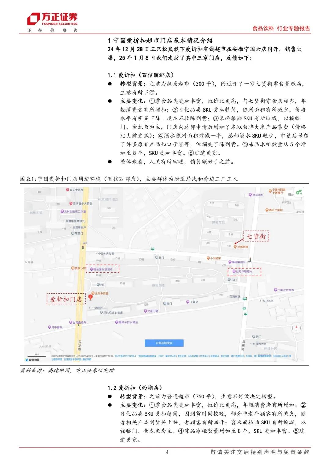 2024年12月28日三只松鼠旗下愛(ài)折扣省錢超市在安徽寧國(guó)六店同開(kāi),銷售火爆,2025年1月8日我們走訪了其中三家門店,反饋如下: