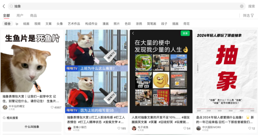 這屆年輕人越來越抽象了。2024年,小紅書有超過1000萬條筆記內(nèi)容提到了“抽象”,搞抽象的評(píng)論超過1.6億條,是小紅書2024年度詞之一。