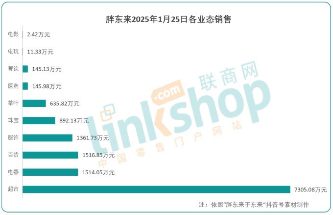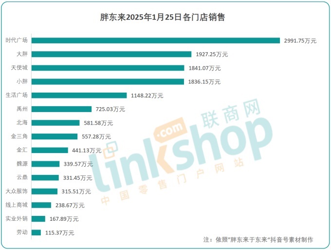 聯(lián)商快訊:1月26日,胖東來創(chuàng)始人于東來在抖音公布了昨日胖東來單日銷售,透露了1月25日胖東來各門店及各業(yè)態(tài)的銷售情況,匯總銷售超1.35億。