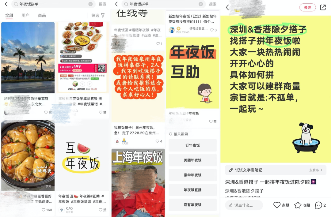 圖:社交平臺(tái)上關(guān)于“年夜飯拼單”的內(nèi)容 來(lái)源:小紅書 《聽(tīng)筒Tech》截圖
