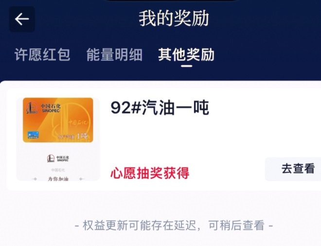 另一位幸運兒是市民曹女士。自淘寶新年許愿活動以來,已經有30萬人許愿“新年加油”相關的內容給自己打氣,最終她獲得了來自本次活動的“愿望實現(xiàn)官”中國石化提供的“1噸92#汽油”。