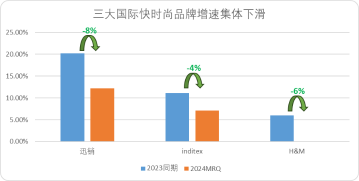 但與之相伴的是,營收增速同樣出現(xiàn)了明顯的下滑,迅銷2024財年(自然年中報期)整體的營收增速為12.19%,較去年同期下降了8.04pct。