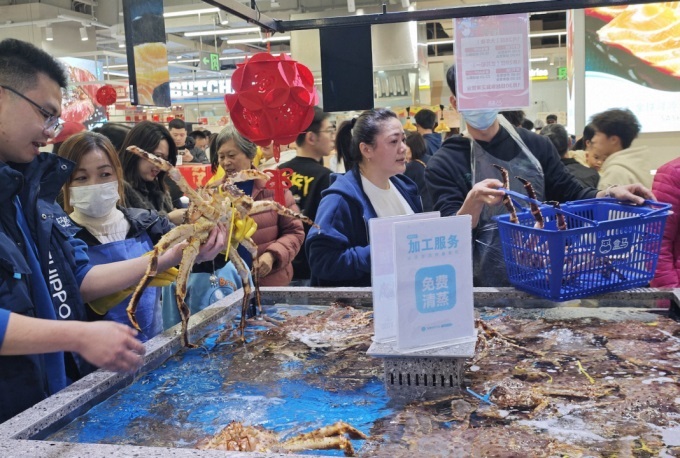 春節(jié)期間,廣大網(wǎng)友紛紛在社交平臺曬出年夜飯,帝王蟹、波士頓大龍蝦、三文魚等進(jìn)口海鮮霸占餐桌C位。數(shù)據(jù)顯示,盒馬春節(jié)海鮮水產(chǎn)銷售同比去年增長近四成,以二三線及縣域城市消費增速最快。其中,帝王蟹在除夕夜的全國銷量TOP3分別是盛澤、義烏、揚(yáng)州3家店。值得一提的是,盛澤店作為盒馬首家鎮(zhèn)級門店,更是突破全國紀(jì)錄單天最高賣出近500只。