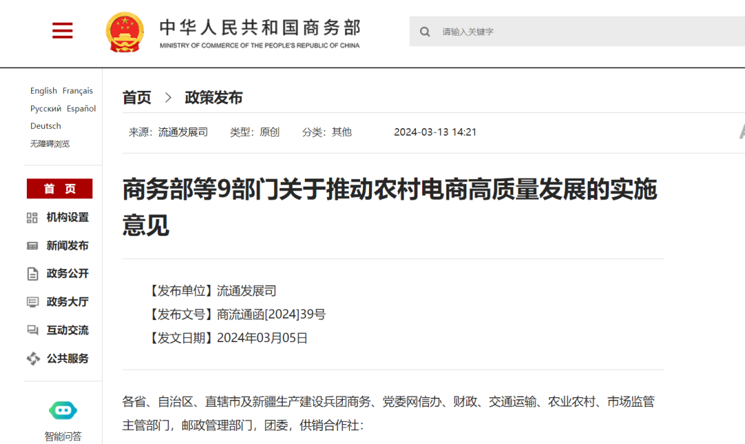 有了快遞的物流,還需要配合不斷發(fā)展的供應鏈,商務部等9部門發(fā)布的《關于推動農(nóng)村電商高質(zhì)量發(fā)展的實施意見》提出,要形成集貨、加工、配送、網(wǎng)銷等統(tǒng)一供應鏈條,以提高鄉(xiāng)村產(chǎn)品上行效率。
