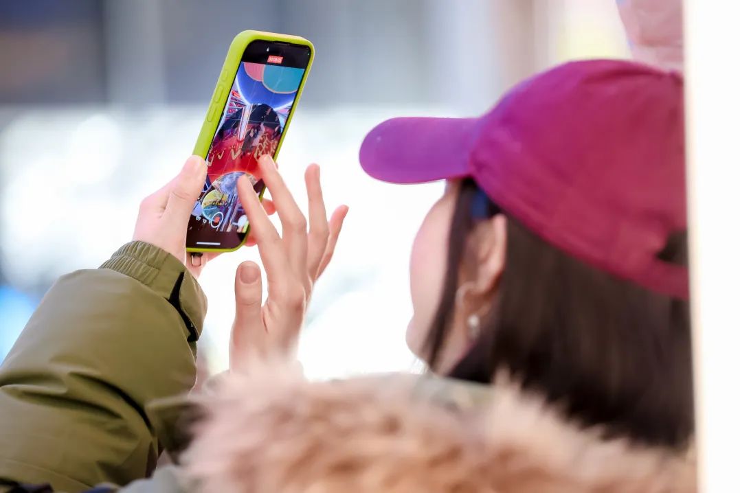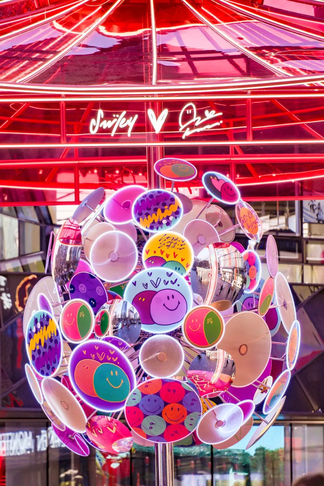 北區(qū)N15 廣場(chǎng)的“微笑藝?yán)取币矒Q上了一襲紅色“年服”,配以新春祝福燈牌,將節(jié)日的歡騰喜慶與蓬勃朝氣展現(xiàn)得淋漓盡致。