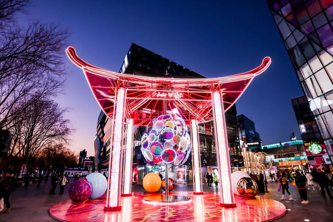 被霓虹燈光包裹的飛檐斗拱,既展現(xiàn)了中式庭院的獨(dú)特韻味,又折射出不拘泥于傳統(tǒng),更輕快灑脫的潮流風(fēng)格。