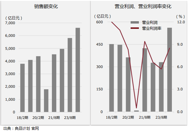 鑒于第一季度業(yè)績(jī)超出預(yù)期,良品計(jì)劃上調(diào)了2025財(cái)年(2024年9月~2025年8月)業(yè)績(jī)預(yù)期。銷(xiāo)售額由7340億日元(約353億人民幣)修正為7540億日元(約362億人民幣),營(yíng)業(yè)利潤(rùn)由550億日元(約26億人民幣)修正為640億日元(約31億人民幣),凈利潤(rùn)由380億日元修正(約18億人民幣)為440億日元(約21億人民幣),預(yù)計(jì)連續(xù)2年刷新最高業(yè)績(jī)紀(jì)錄。
