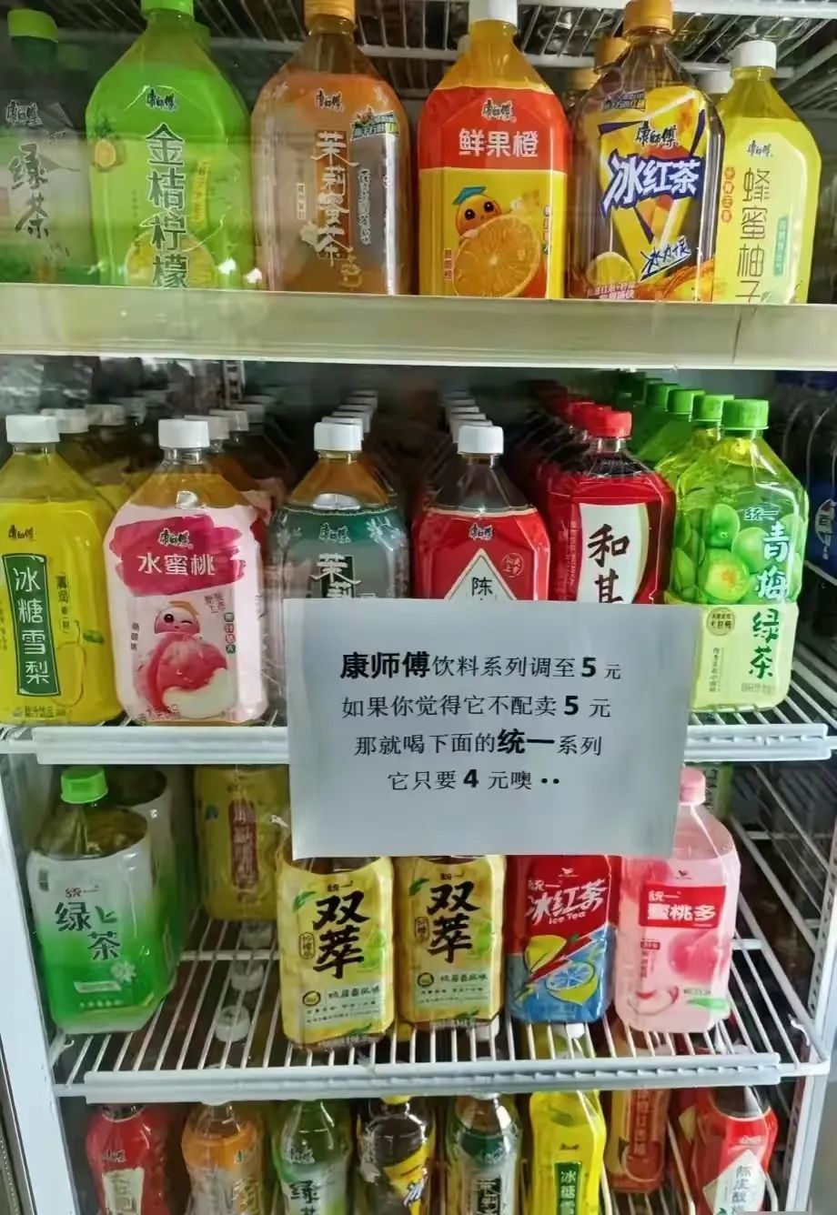 而有的超市店主為了保持銷量,不敢輕易上調(diào)康師傅1L裝飲料的銷售價(jià),仍然維持在4元/瓶,并表示稱:“自己和周邊的商家盡量減少進(jìn)購(gòu)康師傅的貨品,而多向統(tǒng)一傾斜。因?yàn)榭祹煾道麧?rùn)沒(méi)有統(tǒng)一高!