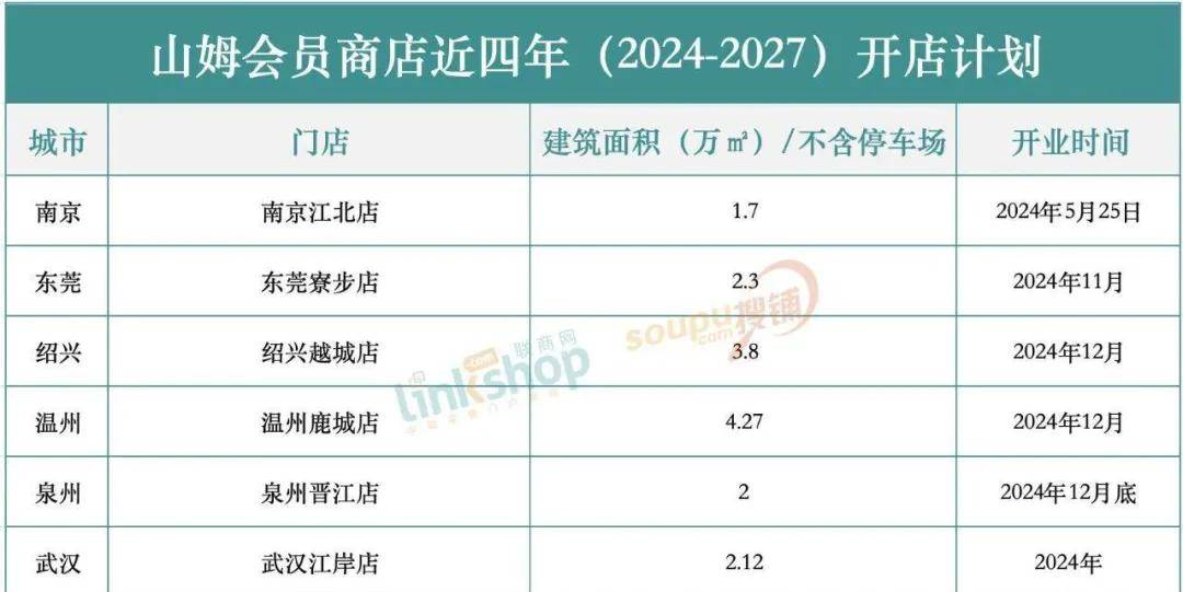 山姆2024年—2027年開業(yè)名單,系“聯(lián)商網(wǎng)”調(diào)研統(tǒng)計