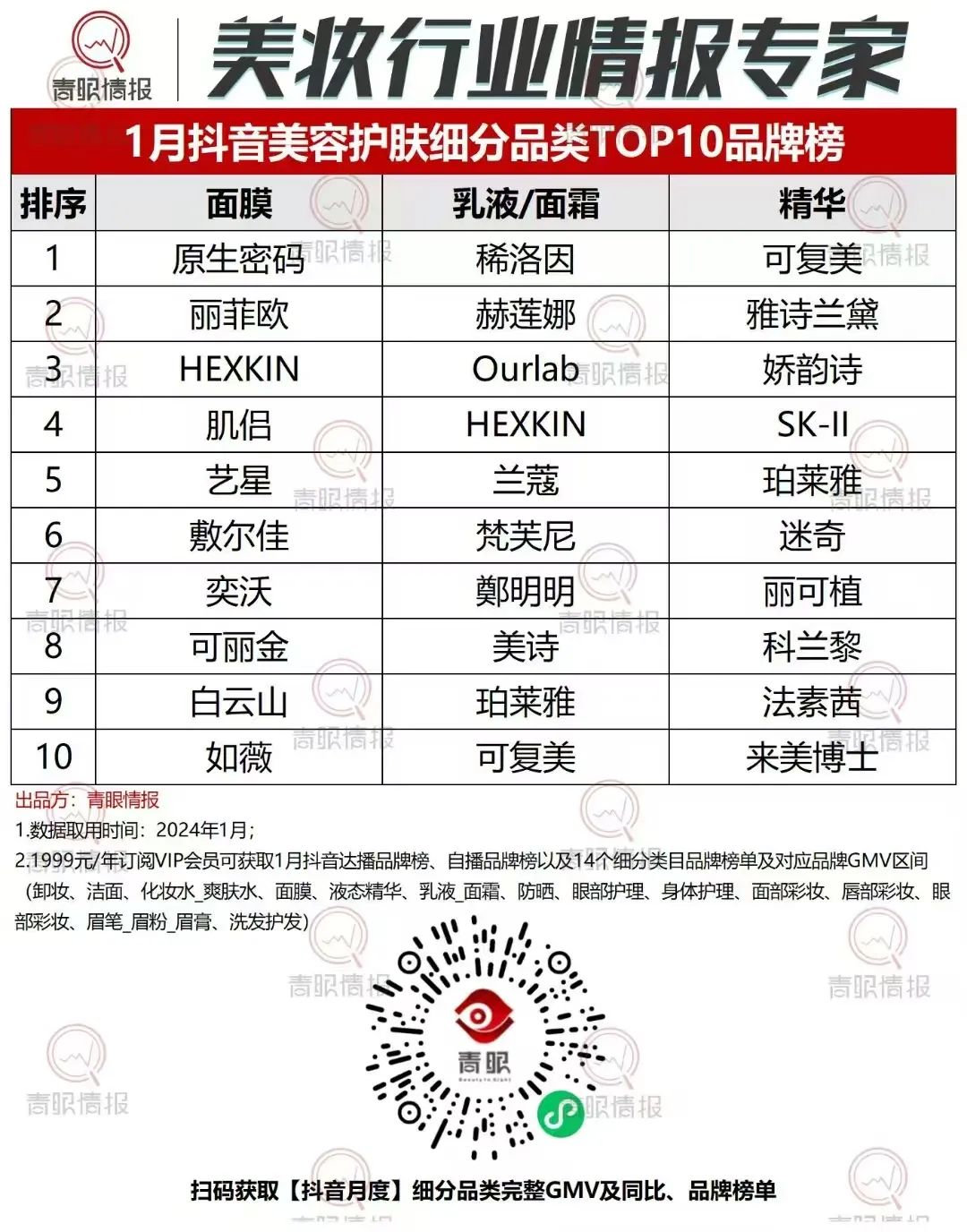 公開資料顯示,原生密碼隸屬于廣州無添加主義化妝品有限公司,后者成立于2014年。據(jù)了解,原生密碼產(chǎn)品品類主要涵蓋面膜、精華液、面霜、眼霜等,目前已入駐抖音、天貓等平臺(tái)。據(jù)青眼情報(bào)數(shù)據(jù),抖音旗艦店在售商品價(jià)格集中在790-3980元,其在2025年1月登頂抖音面膜品牌榜第一名。
