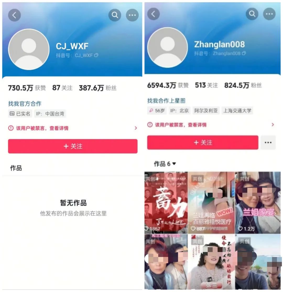 公開資料顯示,張?zhí)m是“俏江南”品牌餐廳創(chuàng)始人、汪小菲母親;汪小菲是麻六記品牌創(chuàng)始人、徐熙媛(大S)前夫。截至賬號(hào)被封禁前,張?zhí)m在抖音平臺(tái)有兩個(gè)賬號(hào),分別為“張?zhí)m·俏生活”和“張?zhí)m之箖玥甄選”,前者有824.5萬粉絲,后者有156萬粉絲;汪小菲則在抖音擁有387.6萬粉絲。
